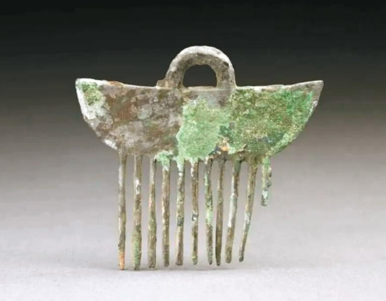 宝鸡青铜器博物院珍藏的西周时期月牙形铜梳出土于(弓鱼国)墓地,以其独特典雅的秀气月牙造型而备受关注。这把铜梳造型采用“月”形握柄设计,便于手持,梳齿细密且排列整齐,造型融合了实用功能与艺术美感,展现了西周时期青铜工艺的高超技艺。据了解,该铜梳与铜制尖底罐、平底罐等器物同出,是西周时期(弓鱼国)墓地的典型随葬品。那么,这件梳子该如何使用呢?宝鸡青铜器博物院工作人员猜测,其用法可能是插在头上,用于固定和装饰头发。古人曾流行插栉,栉为梳篦的统称,插栉便是将梳子插于发髻上,达到美观和固定头发的效果。在唐代名画《捣练图》《唐人宫乐图》中,都可以看到头上插梳子的女子。博物院工作人员谈道,由于墓葬年代久远,这些青铜梳出土时并未出现在墓主头部,难以复原它们的具体用法。但观众通过品赏这些西周时期的青铜梳,完全可以感受到西周时期人们对打理头发、装饰头发的重视。古人认为“身体发肤,受之父母”,人们爱护头发就像爱护自己的皮肤一样。《诗经》中多处写到人们对浓密乌黑头发的喜爱,比如《君子偕老》一诗中写道:“鬒发如云,不屑髢也。”大意是黑发稠密像乌云,不屑于用假发来装点。看来,能拥有一头乌黑漂亮的头发,不仅是今人的美丽追求,也是几千年前古人的礼仪和追求。